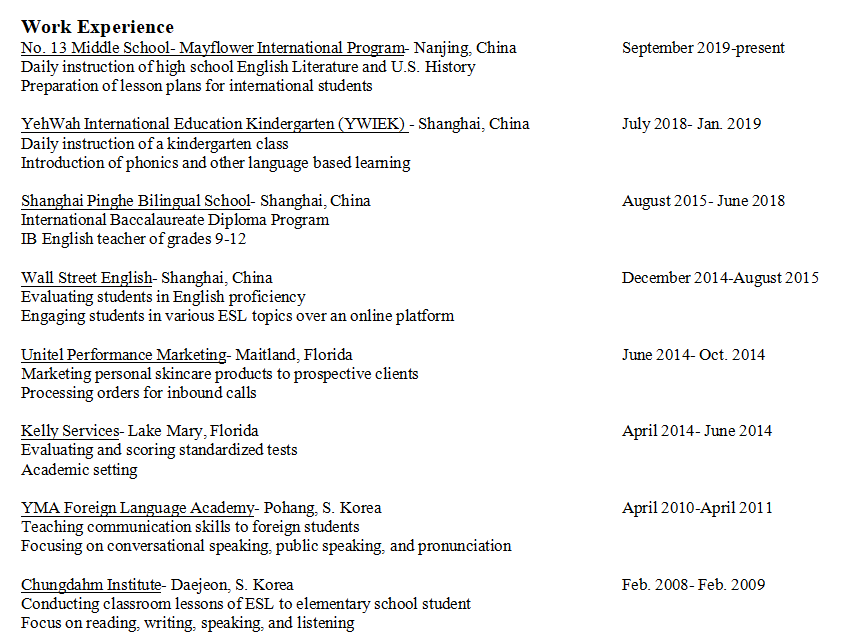 心理學(xué)專業(yè),教學(xué)經(jīng)驗(yàn)豐富,教過(guò)(IB、商務(wù)、和英國(guó)文學(xué)),現(xiàn)在在肯尼亞,求職(上海,深圳,廣州,杭州、南京)等學(xué)校 |