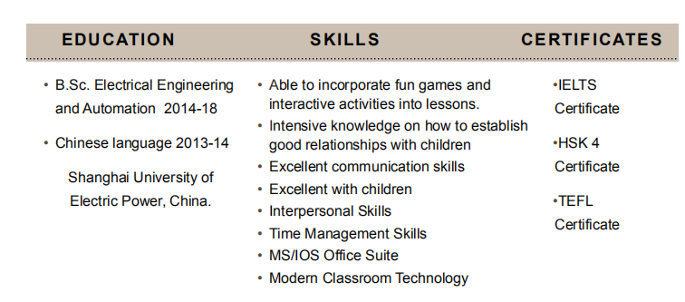 國(guó)籍: 巴基斯坦 求職意向: 教師