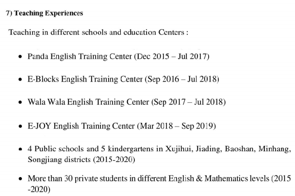 教學(xué)經(jīng)驗(yàn): 2015/12-2017/7:熊貓英語培訓(xùn)學(xué)校 2016/12-2018/7:E-blocks英語培訓(xùn)學(xué)校 2017/9-2018/7:哇啦哇啦英語培訓(xùn)學(xué)校 2018/3-2019/9:E-JOY英語培訓(xùn)學(xué)校 2015-2020:四個(gè)公立學(xué)校和5個(gè)幼兒園工作30個(gè)家教學(xué)生教不同程度的英語和數(shù)學(xué) 教育背景: 2006-2010:本科 早期教育專業(yè) 2011-2014:碩士世界語言專業(yè) 2020-2024:博士 英語專業(yè) 上海大學(xué) |