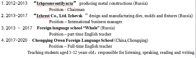 國(guó)籍: 俄羅斯 求職意向: 教師
