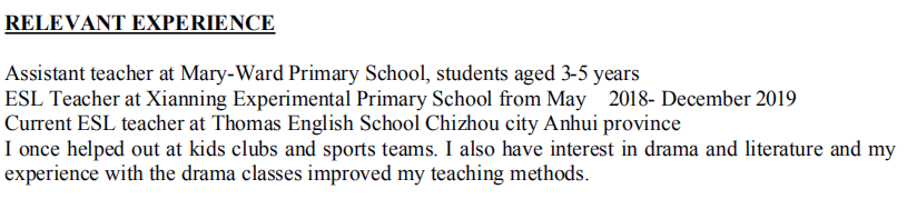 國籍: 其他 求職意向: 教師