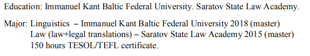 國(guó)籍: 俄羅斯 求職意向: 教師