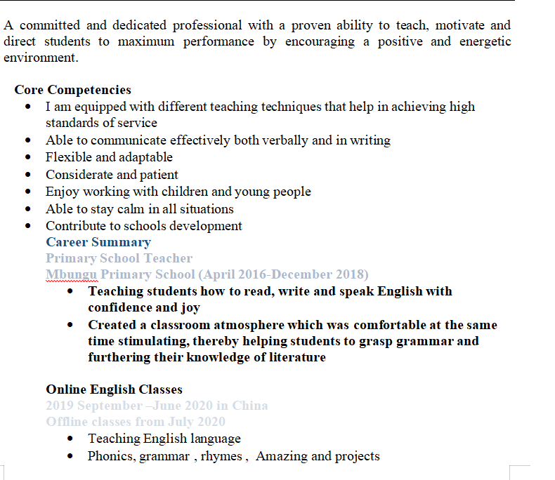國(guó)籍: 南非 求職意向: 教師