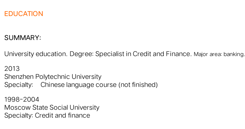 國籍: 俄羅斯 求職意向: 教師