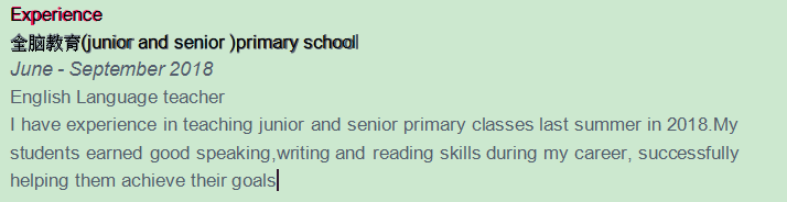 自我介紹,介紹國籍,學(xué)歷,專業(yè),熱愛教育,教學(xué)經(jīng)歷--發(fā)音好