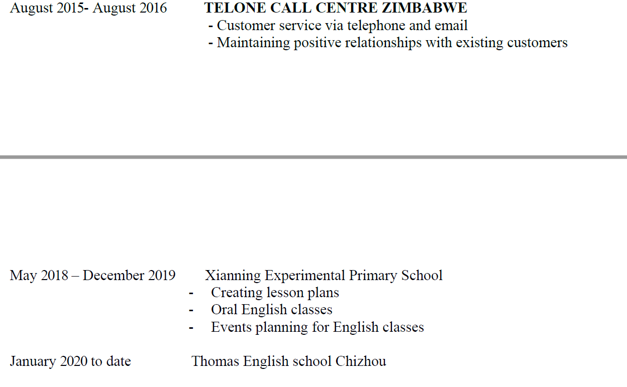國籍: 南非 求職意向: 教師
