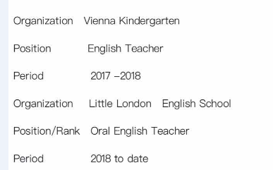國籍: 俄羅斯 求職意向: 教師