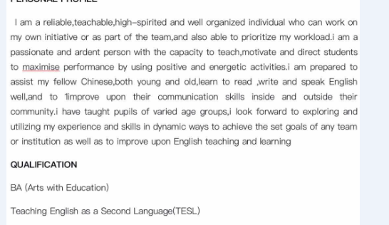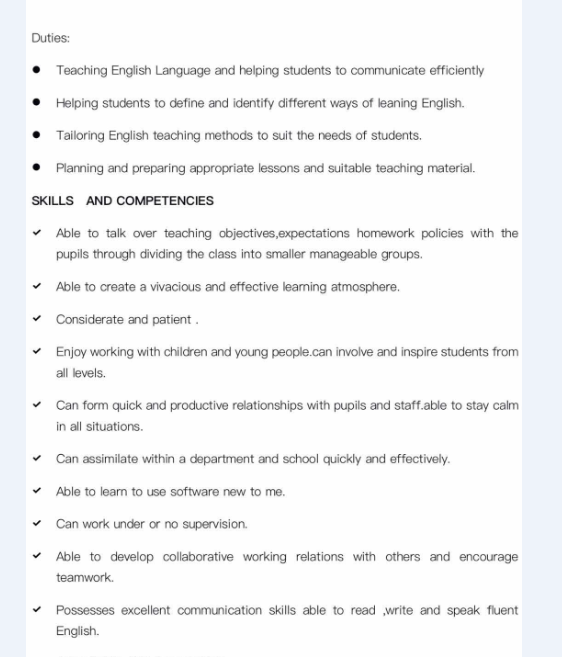 國籍: 南非 求職意向: 教師
