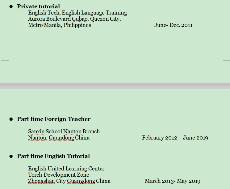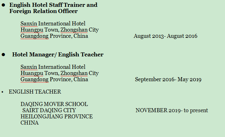joyce+菲律賓女+本科,tesol+英語文教類工簽轉(zhuǎn)聘(2020.10.25)+求職南方+目前在黑龍江大慶, 10 月到崗,已經(jīng)申請離職(16k) |