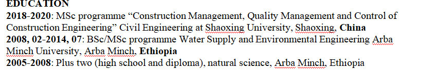埃塞俄比亞, 學生簽到 2021.3. 在紹興 碩士-土木工程專業(yè)(紹興文理學院畢業(yè))無犯罪 在中國的(2018.3-2020.8), 已經(jīng)認證和公正 求職可以辦理工作簽的學校 |