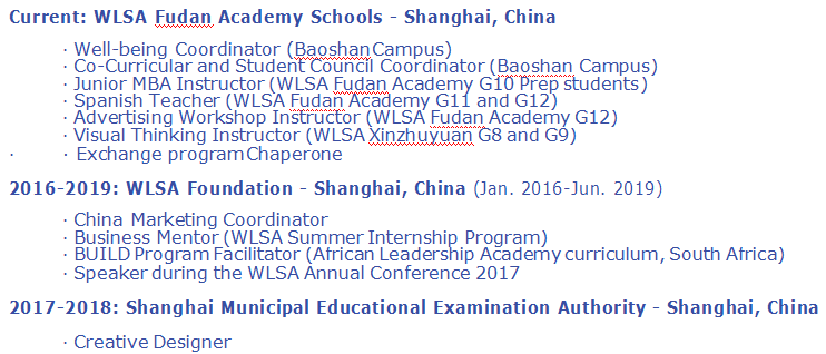 國籍: 南非 求職意向: 教師