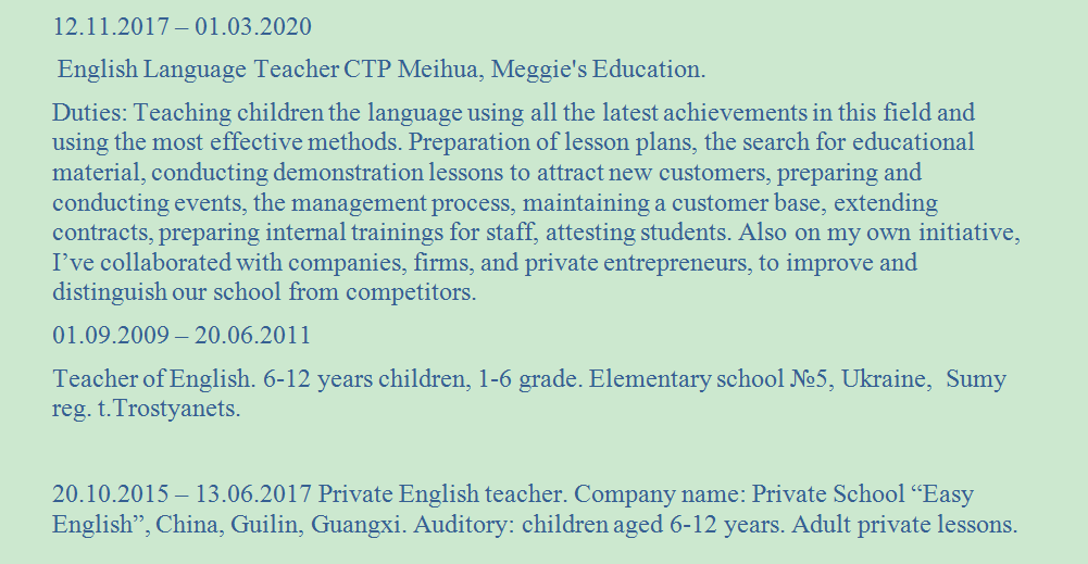 國(guó)籍: 俄羅斯 求職意向: 教師