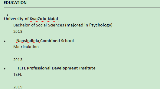 國(guó)籍: 南非 求職意向: 教師