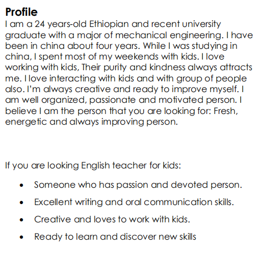 國籍: 南非 求職意向: 教師