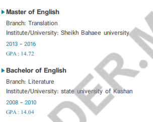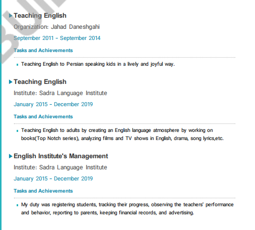 國籍: 伊朗 求職意向: 教師