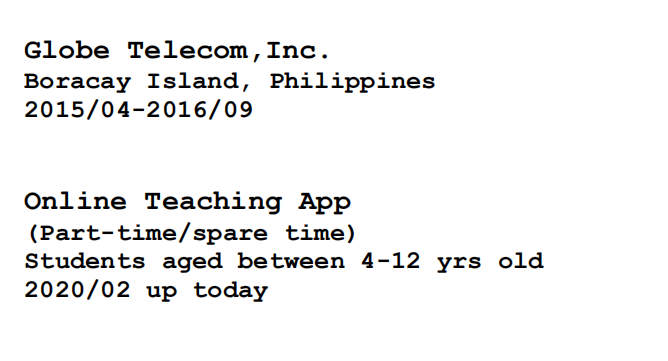 國(guó)籍: 新加坡 求職意向: 教師
