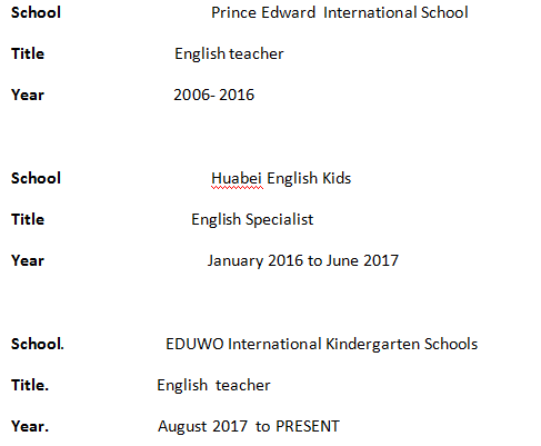 國籍: 南非 求職意向: 教師