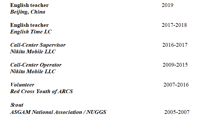 國(guó)籍: 俄羅斯 求職意向: 教師
