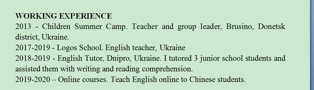 國(guó)籍: 俄羅斯 求職意向: 教師
