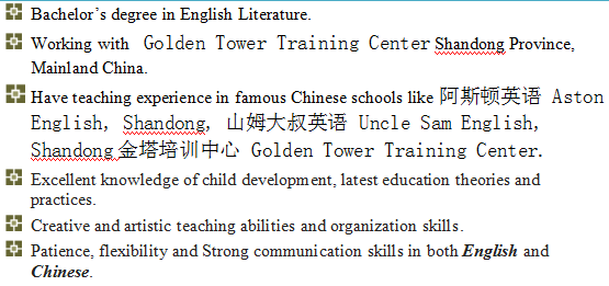 國(guó)籍: 美國(guó) 求職意向: 教師
