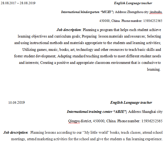 國(guó)籍: 俄羅斯 求職意向: 教師
