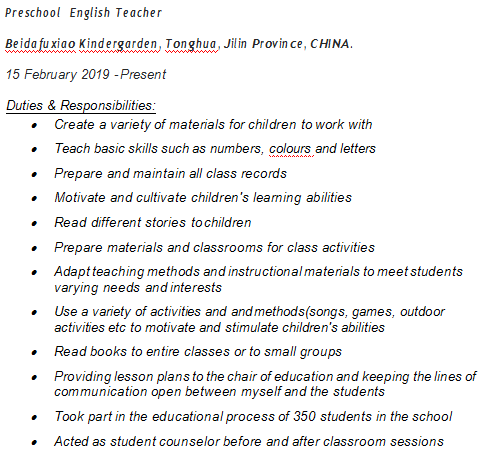 國籍: 俄羅斯 求職意向: 教師