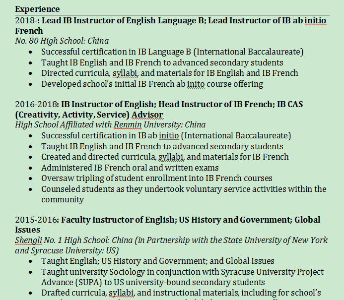 國(guó)籍: 美國(guó) 求職意向: 教師