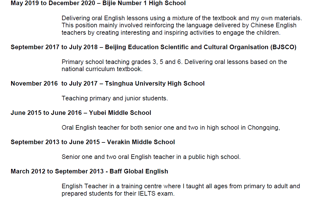 國(guó)籍: 伊朗 求職意向: 教師