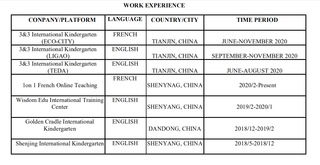 國籍: 俄羅斯 求職意向: 教師
