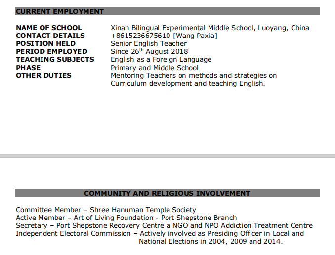 自我介紹,介紹國籍,20多年教學經驗,學歷,tefl,教學經歷,幼兒園,小學,中學,都有經驗。也能教歷史