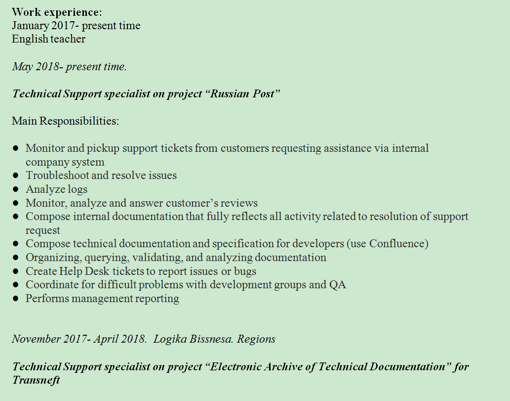 國籍: 俄羅斯 求職意向: 教師