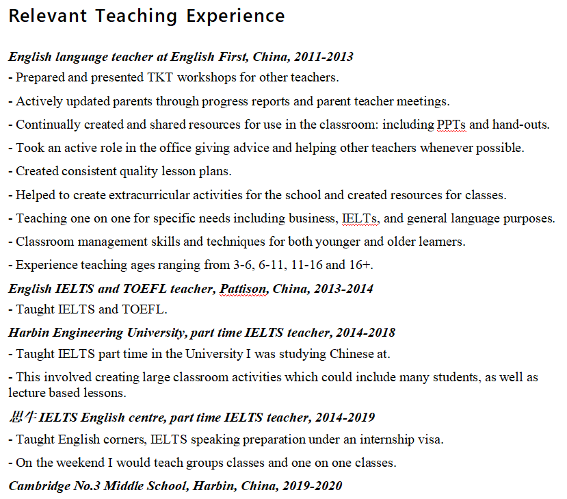 國籍: 美國 求職意向: 教師