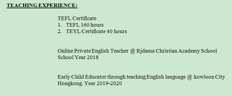 國籍: 伊朗 求職意向: 教師