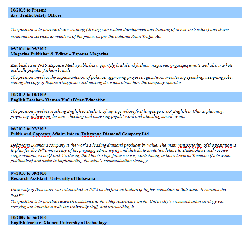 波斯瓦那,本科 -媒體專業(yè) 碩士-電影專業(yè), 政治科學(xué)博士學(xué)位。 家屬簽, 目前在隔離中,求職大學(xué), 高中, 培訓(xùn)班職位。 薪資協(xié)商 |