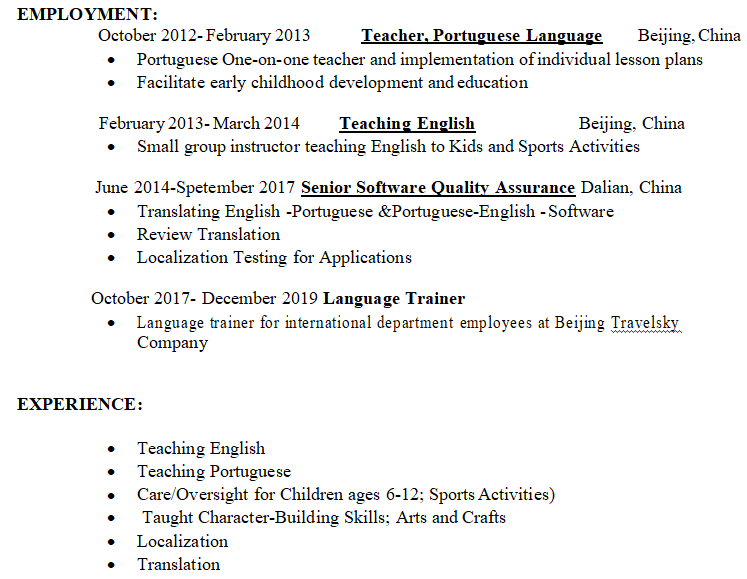 國籍: 美國 求職意向: 教師
