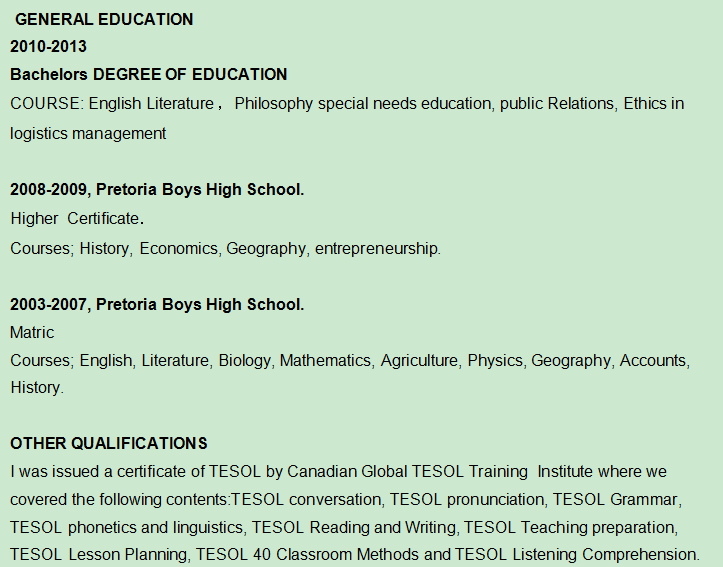 國(guó)籍: 美國(guó) 求職意向: 教師