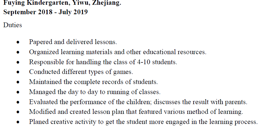 國籍: 美國 求職意向: 教師