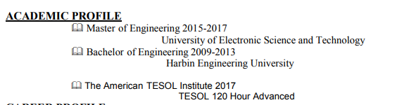 國籍: 新加坡 求職意向: 教師