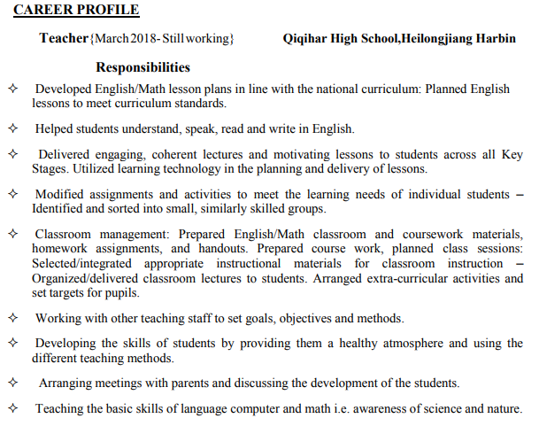 國籍: 美國 求職意向: 教師