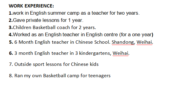 俄羅斯 音樂本科 2018年畢業(yè), 有英語教學(xué) , 體育, 和籃球教學(xué)經(jīng)驗, 求職威??梢赞k理工作簽證和pu 的學(xué)校。 |