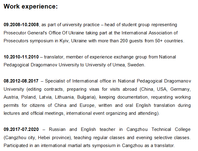 自我介紹,介紹姓名,年齡,國籍,會三國語言,學(xué)歷,工作經(jīng)歷,中國工作經(jīng)歷,作為俄語和英語老師,發(fā)音棒棒噠