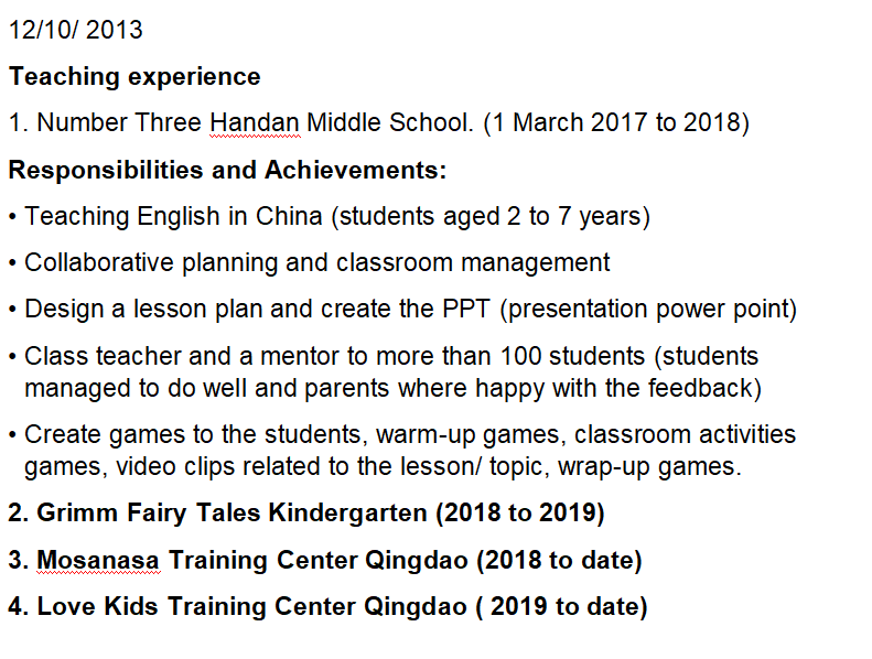 國(guó)籍: 新加坡 求職意向: 教師