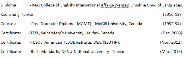 國(guó)籍: 伊朗 求職意向: 教師