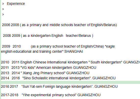 Julia+白俄羅斯女+本科+先免簽進(jìn)來,后辦工簽(資料全)+求職廣州,佛山,中山,上海,昆山,幼兒園最好+目前在本國,12月初來(17+住宿) |