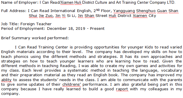 國籍: 新加坡 求職意向: 教師