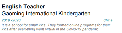 外教有非常豐富的教學(xué)經(jīng)驗 碩士學(xué)歷 限制廣州番禺 求職廣州 |