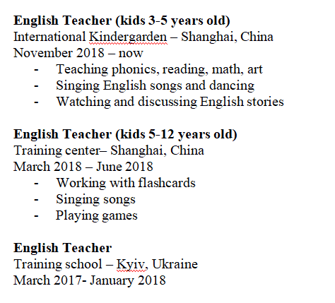 國(guó)籍: 俄羅斯 求職意向: 教師