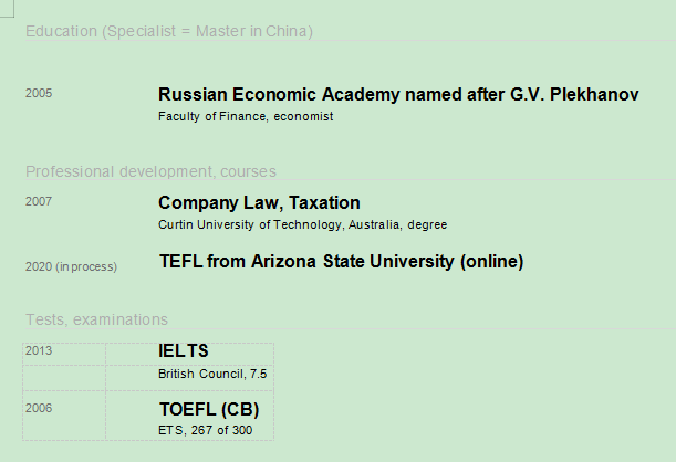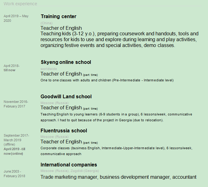 自我介紹,介紹國籍,熱愛教育,教學經(jīng)歷和經(jīng)驗,更希望教俄語 ----發(fā)音好