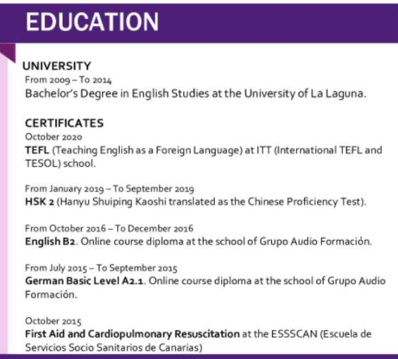英語(yǔ)專業(yè)本科學(xué)歷,并且有tefl 曾在中國(guó)教學(xué),有一定的經(jīng)驗(yàn)。 |