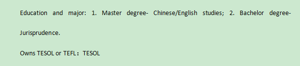 Nik+俄羅斯男+碩士。Tesol+自理商務(wù)簽(2021.02.05),之后可以換成工簽,自理或者學(xué)校辦都行+求職重慶、杭州、上?;蛘邚V州+目前在上海隔離,月底結(jié)束后盡快到 |
